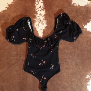 Play Date Floral Print Stretch Cotton Bodysuit size XS