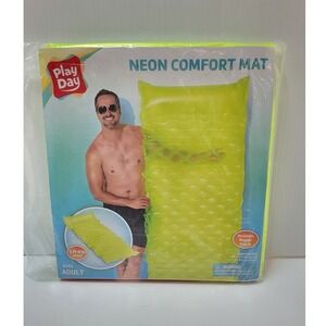 Dive into summer fun with this Play Day Neon Comfort Mat! Imagine yourself lounging effortlessly on the water, the gentle waves rocking you into a state of pure relaxation. This inflatable pool float features a built-in pillow for added comfort, making it the perfect companion for lazy days at the pool or beach. The vibrant neon color adds a pop of fun to your summer adventures, ensuring you'll stand out in style. It even includes a repair patch for those unexpected moments. Ideal for relaxing at the lake, soaking up the sun at the beach, or simply unwinding in your backyard pool.