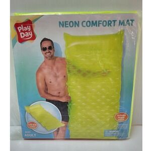 Play Day Neon Comfort Mat Inflatable Pool Float Lounger with Pillow Adult