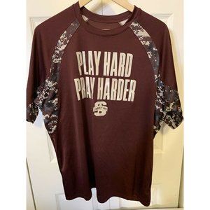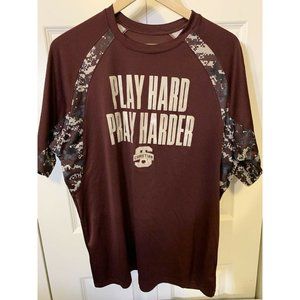 Play Hard Pray Harder Men’s Sz L T Shirt Badger Maroon White