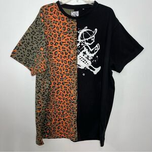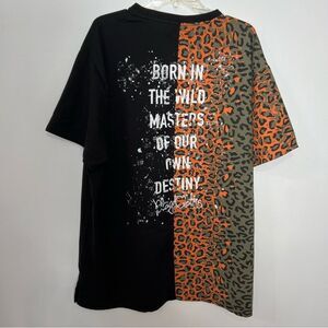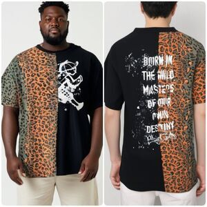 The inspiration for Pusha T's Play Cloths were the clothes that kids are allowed to wear when they get home from school and were granted permission to play outside. His brand is known for bright colors on black and white. You will definitely stand out with this bold leopard print graphic shirt. Perfect for making a statement, this shirt combines style and comfort.Graphic saying on back "Born in the Wild. Masters of Our Own Destiny."