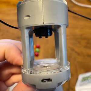 **Please note this box was opened, the drone has a broken piece but still "flies", may want to glue the broken piece or something to keep it straight. Missing: cord