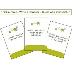 Pick a topic, everyone writes a response, read them out loud, & guess who said what. There are no right or wrong answers. Just a lot of laughs.