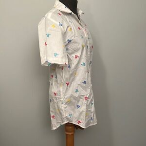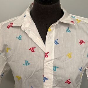 This Short Sleeve collared shirt is Great for Gaming Fans, Old School and New. This white woven button-up shirt features an all-over PlayStation icon print design.