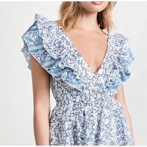 Playa Lucia Blue & White Ruffled Cotton Dress – Statement Piece!