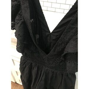 Playa Lucila Dress Womens Medium Black Eyelet V Neck Ruffle Mini Babydoll Fairy
