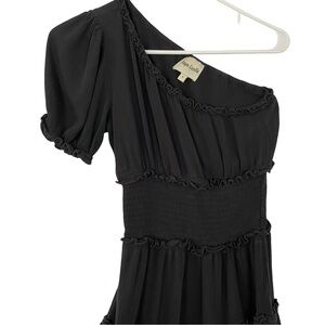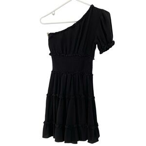 Playa Lucila One Shoulder Dress Womens Size Small Black Sundress Tiered Mini
