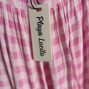 Playa Lucila Pink Check Gingham Empire Slit Maxi Slip Dress Picnic Preppy XS