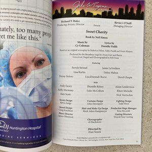 Brand New Color Playbill from Neil Simon ‘s SWEET CHARITY presented by John W. Engeman Theatre in Northport N.Y. starring Sarrah Strimel Jamie LaVerdiere Lisa Karlin Debra Walton Book by Neil Simon Music by Cy Coleman Lyrics by Dorothy Fields ** This is a Brand New Color Playbill from SWEET CHARITY presented by John W. Engeman Theatre in Northport N.Y. . The stars of this new production of the Musical are Sarrah Strimel and Jamie LaVerdiere . Their are Headshots and Biographies of the cast members. The Playbill is in Excellent Condition. No rips or tears. The Production ran in September - October 2012. Directed by Alan Souza and Choreographed by Al Blackstone. The Full Cast include Sarrah Strimel Jamie LaVerdiere Lisa Karlin Debra Walton Danny Bolero Lisa Donmall- David Glaspie Andy Geary; Danielle Kelsey; ADAM LENDERMON; Kelly Marteney; LUKE McCOLLUM; KHORI MICHELLE; KATE SCOTT and Nick Varricchio.