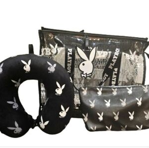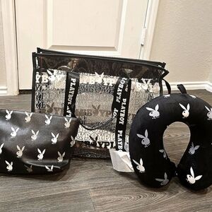 🔹️Playboy 🔹️4-PC black Signature Logo Transparent Tote Travel Set