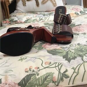 brown studded heeled sandals. Perfect for any occasion, they offer both comfort and elegance.