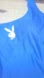 Bold blue one piece swimsuit featuring the iconic Playboy logo. Eye-catching and stylish. Perfect for a chic beach look.