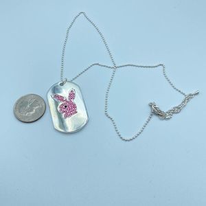 Playboy Bunny Pink Crystal Name Tag Fashion Necklace 2006-2007 Y2K
