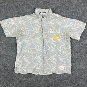 Playboy Button Shirt Mens Medium Gray Marbled Print Short Sleeve Resort Casual