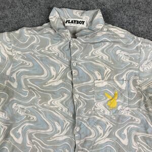 Playboy By Pacsun Button Shirt Mens Medium Lady Puerto Rico Gray Marbled Print Short Sleeve Resort Casual Rayon