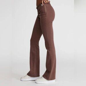 Trendy and flattering Playboy by PacSun flare jeans in rich chocolate brown. Features a unique ruched V-front waistband with raw edge detailing, embroidered Playboy bunny logo on front hip, and “PLAYBOY” stitched across the back waistband. Made of stretch denim for a comfortable, curve-hugging fit. Mid to high rise with a flared leg for that Y2K throwback vibe. Size 27