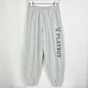 The Playboyfriend Sweatpants have a soft fleece fabric, bold Playboy branding, and a relaxed fit with an elastic drawstring waist. No holes or tears.