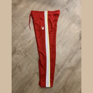 Playboy By Pacsun Track Pants Men's Medium M Red Striped Bunny Logo Active Performance Athletic Sweatpants Streetwear