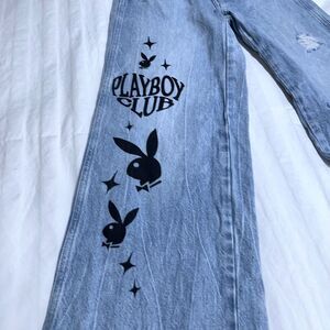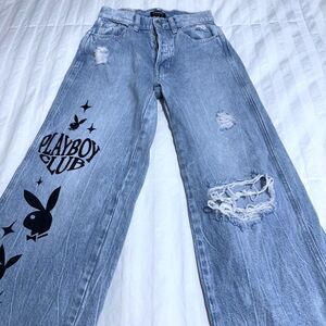Playboy Club By PacSun Super Distressed High Waisted Baggy Buttoned Jeans Sz 23