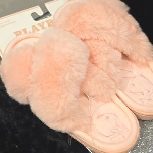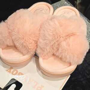 Playboy Embossed Logo Plush Memory Foam Cross Slippers