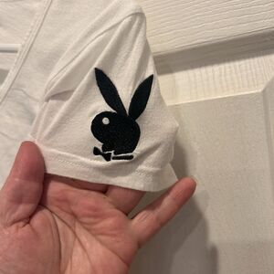 Playboy Graphic Bunny Logo Short Sleeve T-Shirt Size Large White Black Logo Y2k