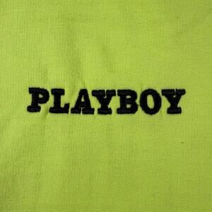 Playboy Hoodie Men’s Medium Neon Yellow Embroidered Logo Pullover Sweatshirt