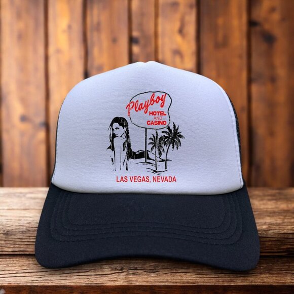Playboy Hotel & Casino Mens Trucker Hat Black Las Vegas Nevada Bunnies Ball Cap