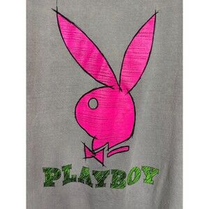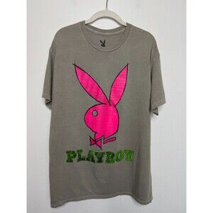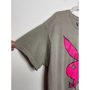Playboy Large Graphic T-Shirt Gray Pink Oversized Crewneck Short Sleeve NWOT