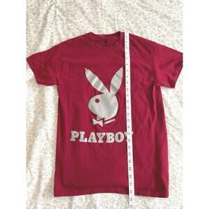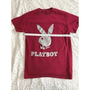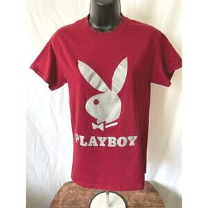 Playboy Logo T-Shirt Red Silver Graphic Size S