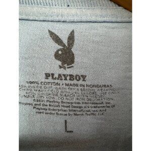 Playboy Long Sleeve Mens L Blue Graphic Logo Tee 100% Cotton Crewneck Honduras