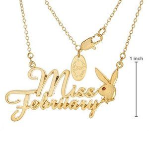 Playboy Necklace Miss February Bunny Pendant Gold Plated Birthstone NWT RARE y2k