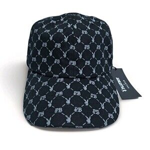 Playboy PacSun Strapback Hat Black Gray Cap All Over Print Logo StrapBack