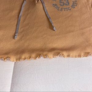 Ribbed lace up tank with lettuce hem