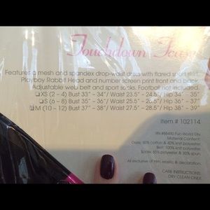 Football styled official Playboy costume. Includes the dress and socks pictured on model. Brand new, never worn.
