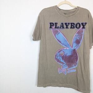 Playboy Unisex Top Officially Licensed Tan Tie Dye Blue Bunny Graphic Tee Size S