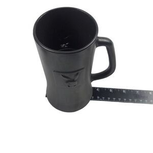 Playboy Vintage Tall Black matte Glass Tankard Stein Mug raised Logo Good preowned condition Questions please ask before purchase See photos for measurements Measurements are laying flat and approximate