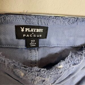 Playboy Women's Size 27 Blue and Purple Flare low-rise raw hem Jeans logo Boho