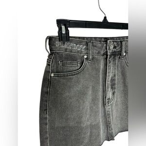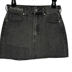 Playboy X PacSun Y2K Style Distressed Denim Mini Skirt with Bling Bunny and Logo