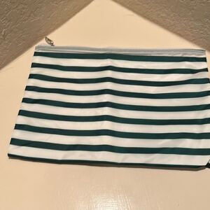 Playboy Zip Top Waterproof Beach Pouch White Green Stripe Toiletry Cosmetic Bag