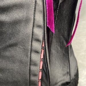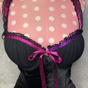 Playboy black satin 2 tone pink & purple ribbon detail corset top