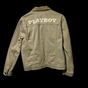 Playboy by Pacsun Men’s Beige Denim, Corduroy Collar Trucker Jacket Size SMALL