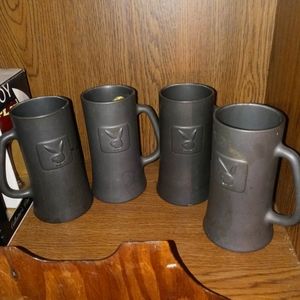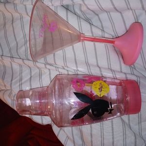 All playboy brand. 4 vintage beer mugs, vintage goblet set, mixer with 1 cup, purple and pink glass cups still in the box and the purse.