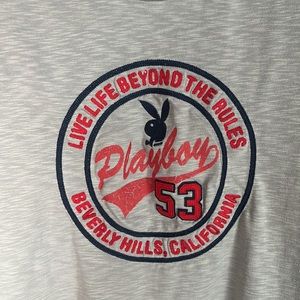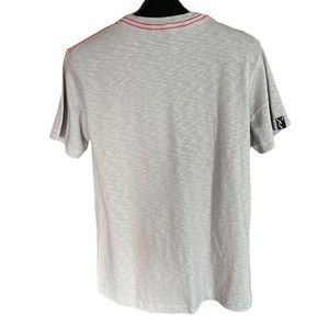 Measures 20 inches pit to pit and 28 shoulder to hem in like new condition. Has patch on sleeve and hem