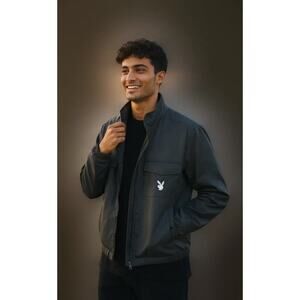 Playboy x PacSun Bomber Jacket Black/Gray Logo, Size M/L, Excellent Condition