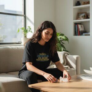 Soft black cotton keeps it breathable & comfy, while the bold crystal graphic makes it a conversation‑starter whether you’re skating downtown or chilling at your favorite coffee spot.