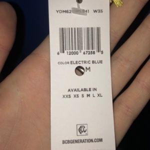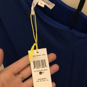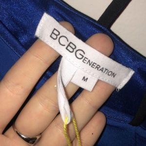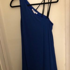 Super fun, flattering BCBGeneration dress in bright blue with 3 black straps on one shoulder. Stretchy, forgiving material makes for a nice, flowing fit and the color is really unique. Brand new with tags, was a gift and not quite my style.