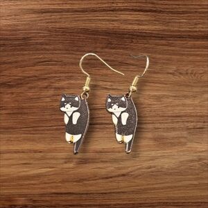 These earrings feature charming cat designs in a playful climbing pose, highlighted by a striking black and white color contrast. The elongated shape and curved tails add a sense of movement, making them a delightful accessory for any jewelry collection.