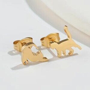 Playful Cats Stainless Steel Stud Small Earrings #1409 (Color: black)