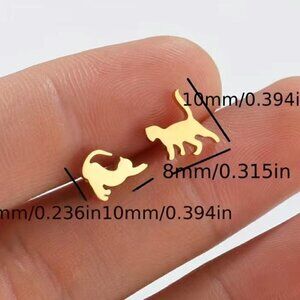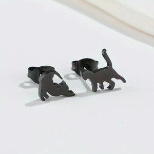 Playful Cats Stainless Steel Stud Small Earrings #1409 (Color: black)