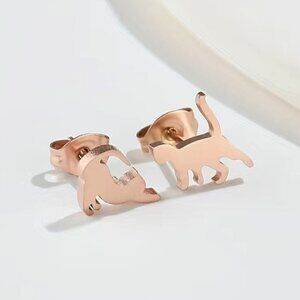 Playful Cats Stainless Steel Stud Small Earrings #1409 (Color: gold)